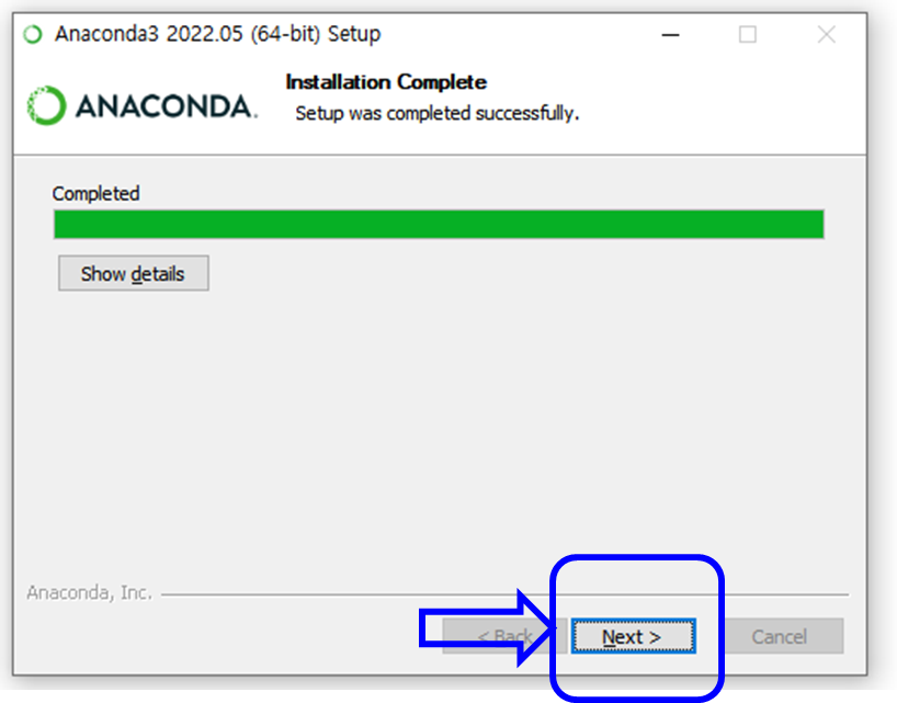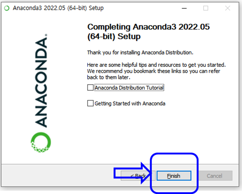 여기까지가 아나콘다 설치였습니다.